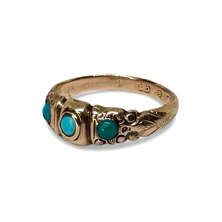 VICTORIAN ANTIQUE TURQUOISE TRILOGY ORNATE RING SIZE M